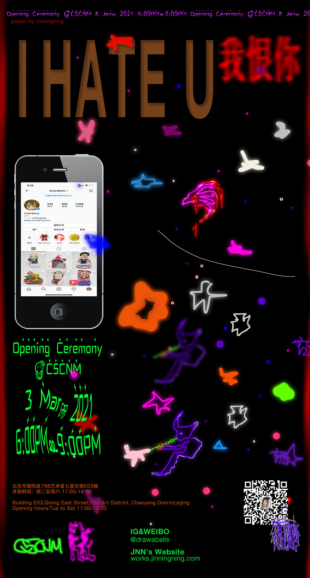 一双手透过墙洞弹奏起萨蒂的裸体舞曲一号,在饮尽后遗留的土耳其咖啡渣里泄露命运的天机,墙角堆积着空无主人的小小沙发,和墙壁黑色亮膜上被捆绑的画作在闪烁的灯光中散发着微弱且变幻多端的光芒。上周我们去参加了艺术家朋友金宁宁的个人项目“我恨你”开幕,奇妙又温馨的场景依然回荡在脑海中。其中最喜欢的部分则是一字排开的迷你小沙发。